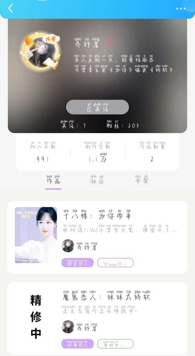 乔妤星“新人作者,请大家多多指教。”