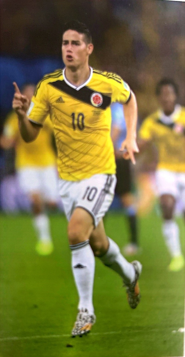 2014年世界杯八分之一决赛,哥伦比亚二比零淘汰,乌拉圭哈梅斯罗德里格斯包办两粒进球,其中一粒更是精彩绝伦。