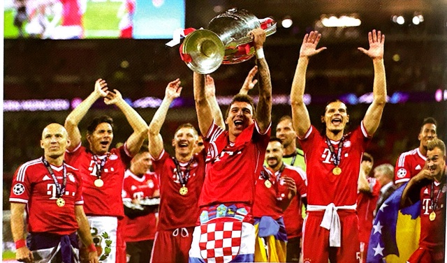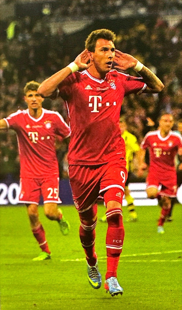 2012到2013赛季欧冠决赛,拜仁同多特蒙德上演巅峰对决曼珠基奇第60分钟率先进球,他做出了倾听全场欢呼的轻松动作。