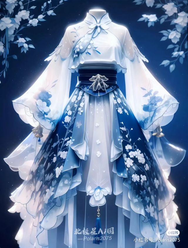 最后一个出场的是清绫,她仍然是一身白蓝色的连衣裙,只是这次与她之前穿的常服不同,她这次的连衣裙蓝色明显偏多,裙摆明显加长,花纹也更加复杂,正前方的裙摆中间垂下一条深蓝色的流苏,随着清绫的动作摇晃。
