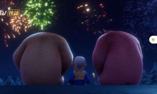 回到家后光头强拿起画笔开始在行李箱上画自己和熊大熊二
