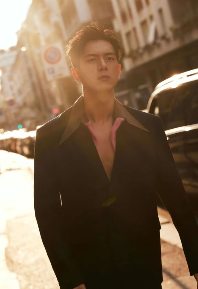 24岁的李现嘴角上扬,露出整齐洁白的牙齿,爽朗又带着些许羞涩的挠头笑着。