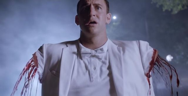 而男名媛会那边也遇到了红衣恶魔,男名媛们拿着棒球棍,红衣恶魔拉着电锯,切完一个胳膊,帅气的男孩弯腰从自己断掉的右手中捡起棒球棍,左胳膊举起刚要打下去,又被切一个胳膊。