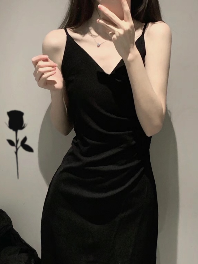 你身穿一件黑色性感的吊带裙,细窄的腰身完美的勾勒成熟女人的妖娆身段,一双纤细白嫩的大长腿是如此的好看.一头长到腰间的粽色长发懒散的披在身后,又给你增添了几分美色