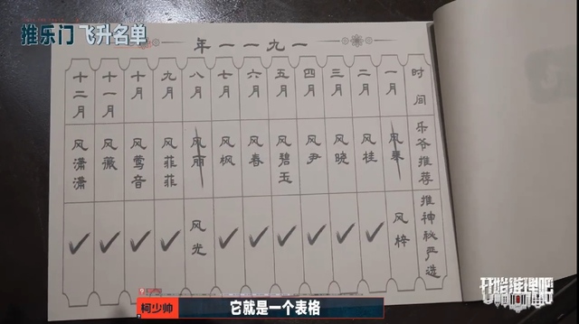 柯少帅“它就是一个表格,第一行是时间,第二行是叫做乐爷推荐,第三行上叫推神秘严选。”