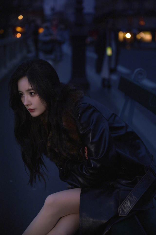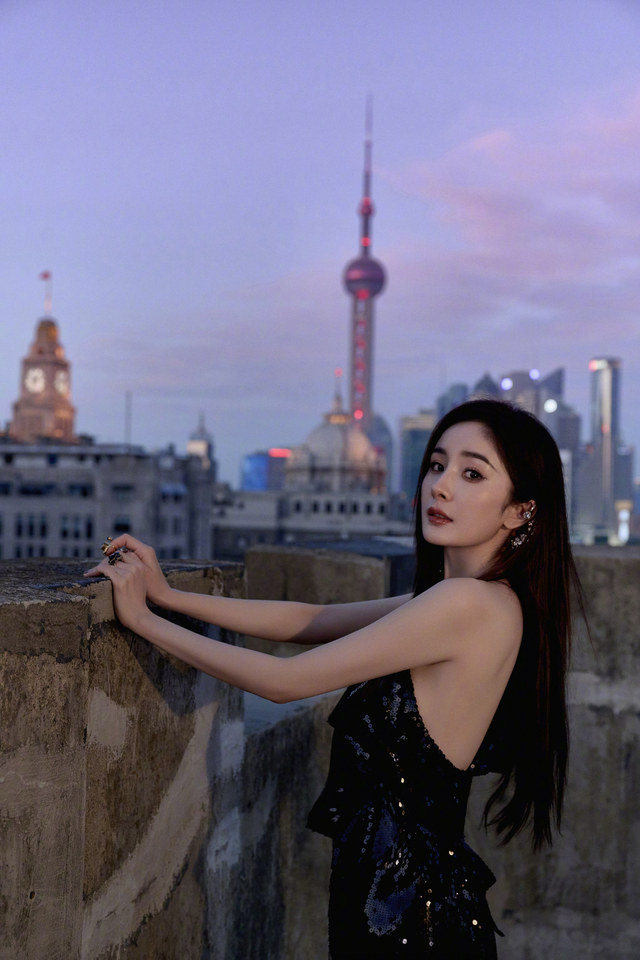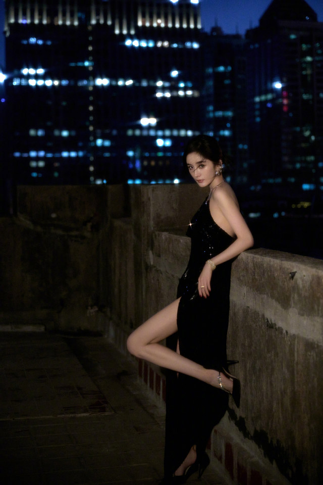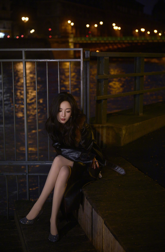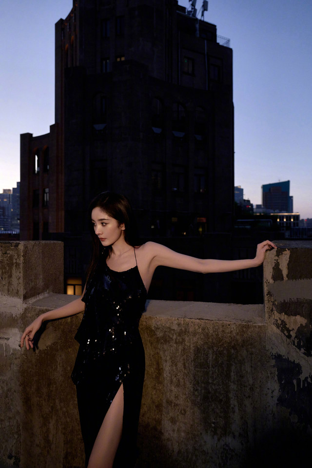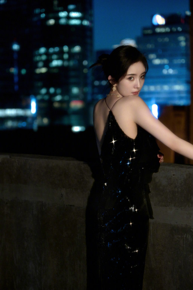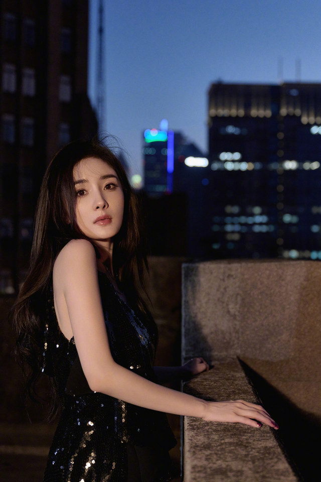 晚上,杨幂一个人,拍着照片,臭美。