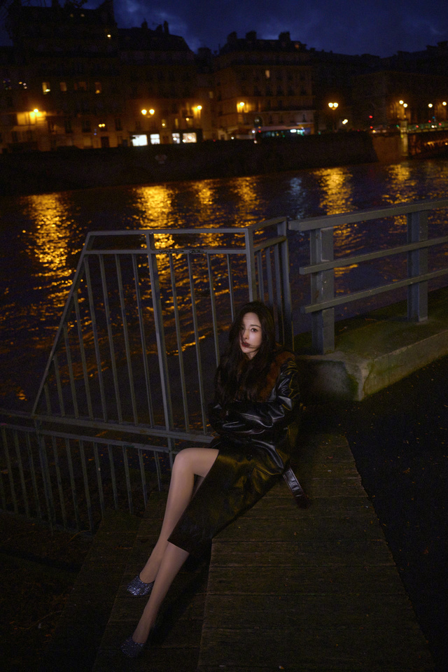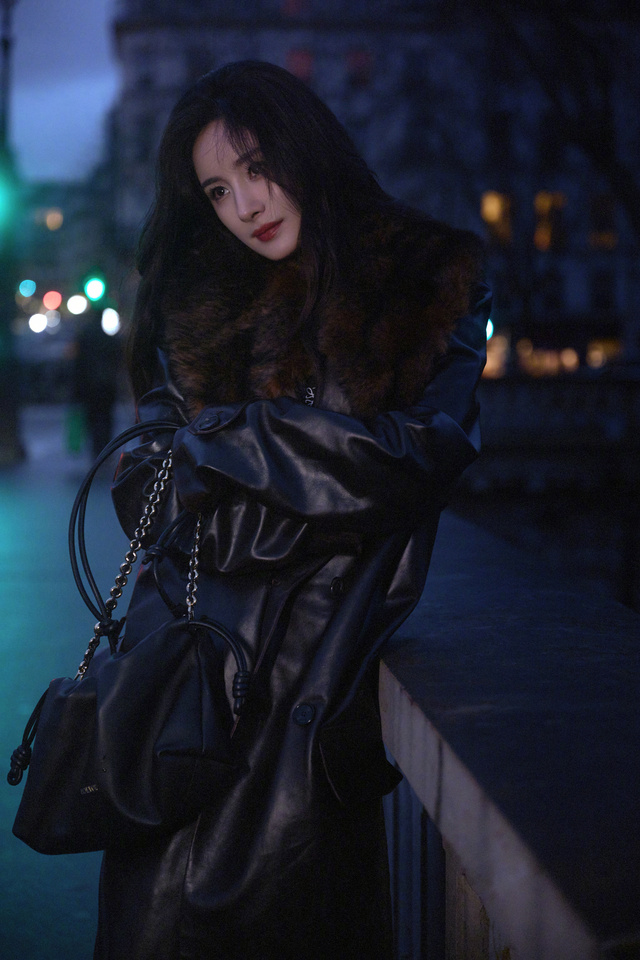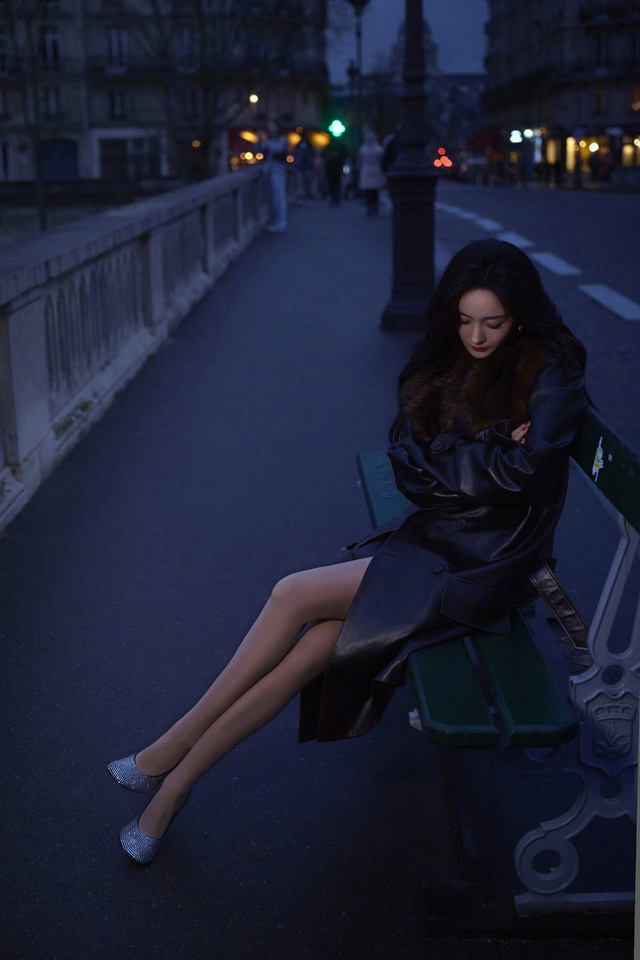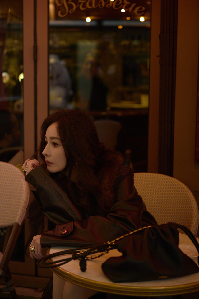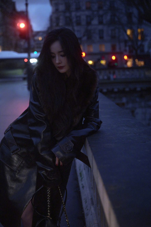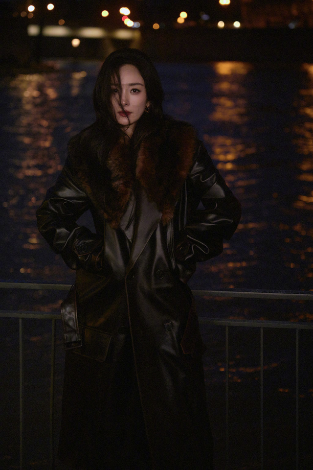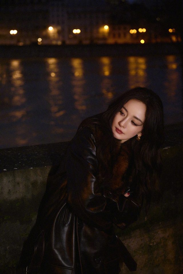 晚上,杨幂一个人,拍着照片,臭美。