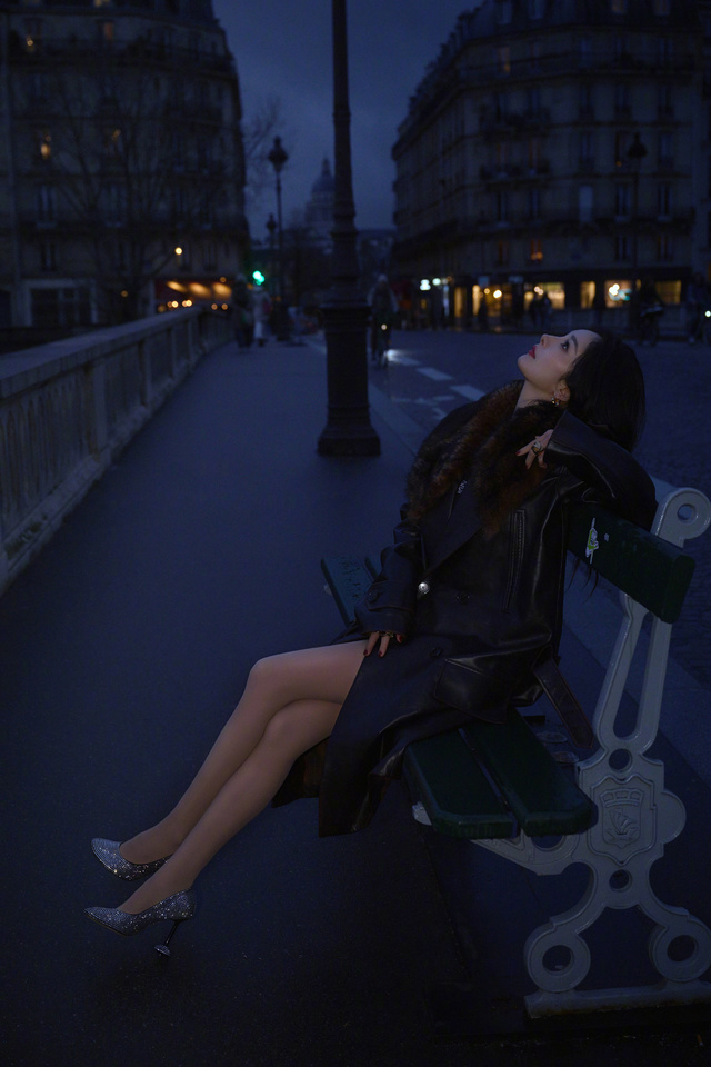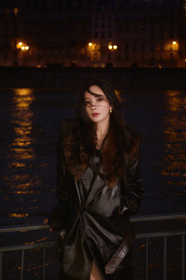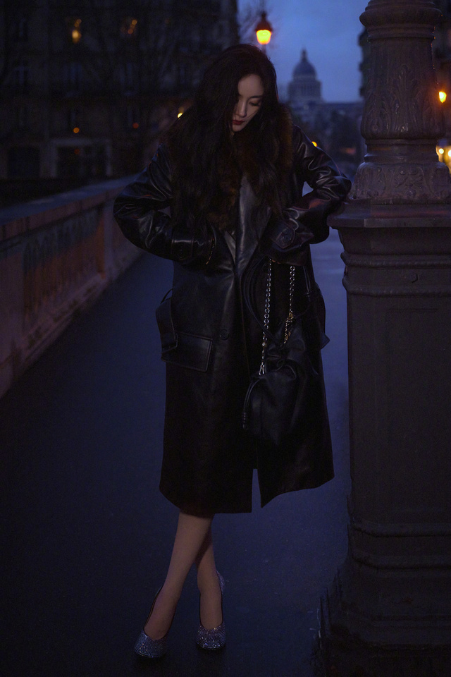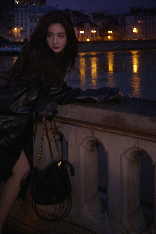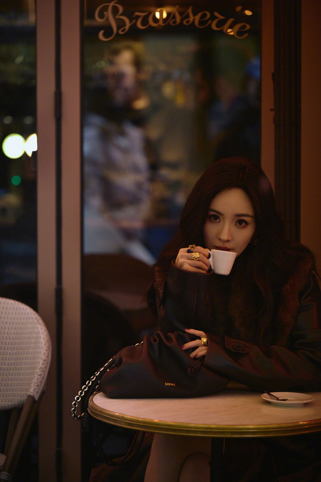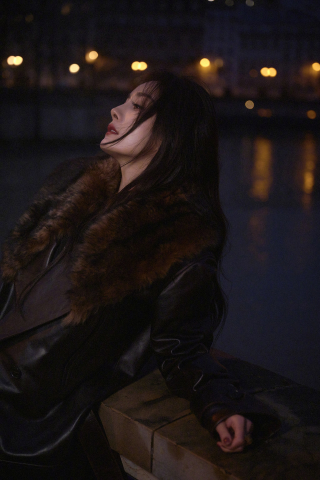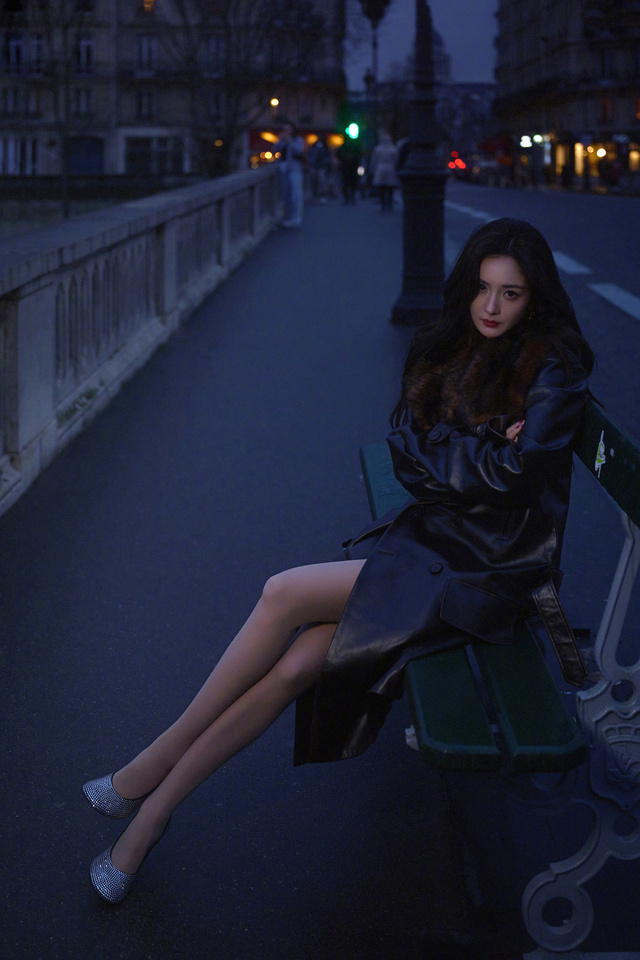 晚上,杨幂一个人,拍着照片,臭美。