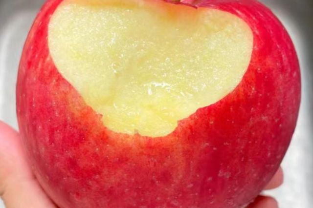 颜小娅将削好皮的苹果递给妈妈。