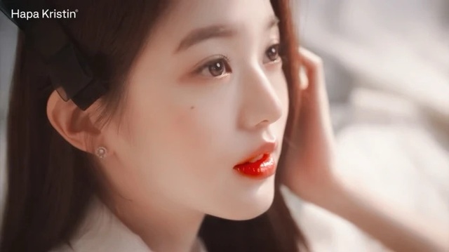第一眼就是她那令人惊艳的侧颜,她的五官精致而立体,每一笔都恰到好处地勾勒出她的美丽轮廓。皮肤如凝脂般滑嫩,仿佛能透出光泽,让人忍不住想要伸手轻轻触摸