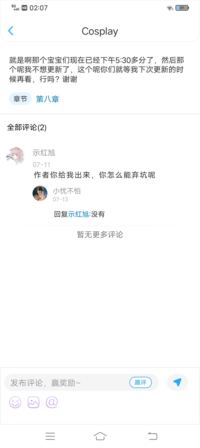 灰米这个呢我没有去看哈,我只是呢那时候的意思是我那个时间段先分析,等我有时间了我再继续更新,不代表我弃坑了要在喂宝宝,所以我今天才登录这个话本来看在找到这条消息所以呢我想说一个事,就是宝宝我没有弃坑呢,还有谢谢大家的喜欢,我也有很多的留言 没有发出来,但是我还是会能回复的就回复,谢谢大家 😊