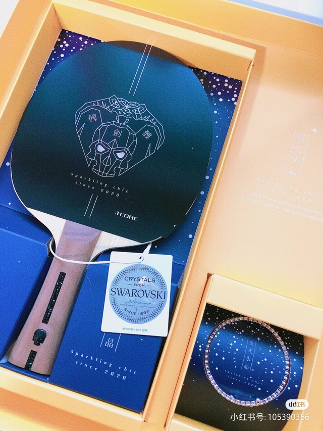 王楚钦轻轻展开手中的物件,眼前赫然出现一副精致无比的球拍。他凝视着这副球拍,脸上不禁绽放出欣慰而灿烂的笑容。