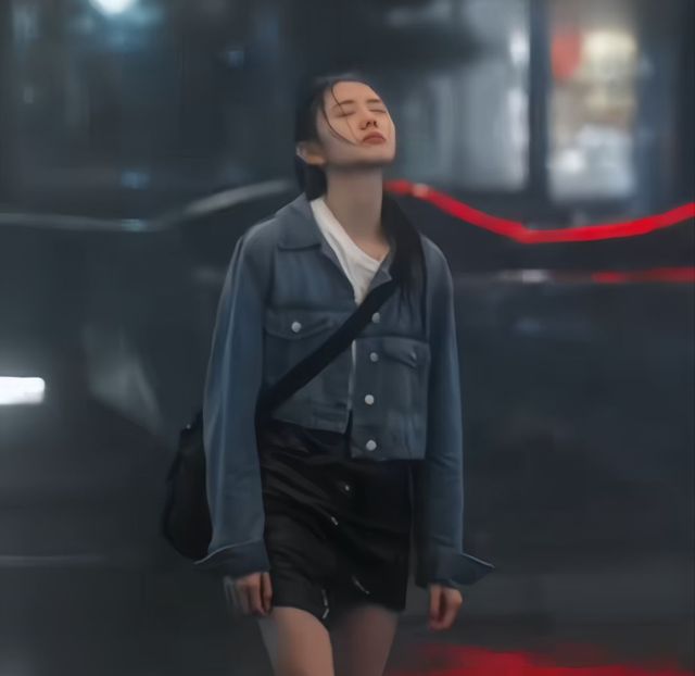 她抬起头,感受着雨水,雨不断的低落在她的脸上和身上.