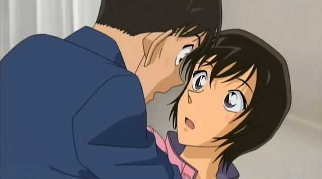 柯南咳嗽了一声打破了两人的暧昧气氛,两人回过神来,佐藤警官立刻排查,而高木警官还沉浸在刚才。