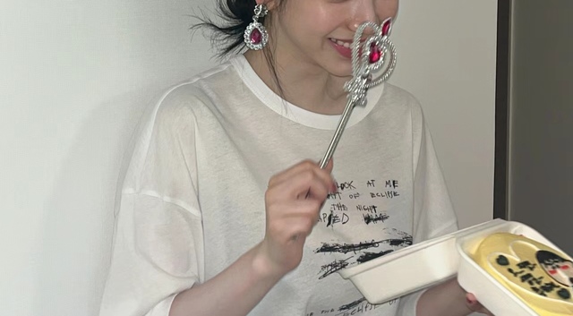 凌晨12点的时候五个人把书吟鸢叫起来给她带上了玩具公主头饰和玩具魔法棒 居然还有玩具耳环 趁着书吟鸢清醒点了 把蛋糕放到她手里 围成一个圈围绕着书吟鸢唱歌