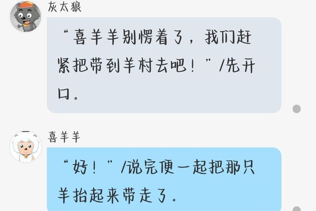 喜羊羊“灰太狼你先照顾这只羊,我去找村长去。”