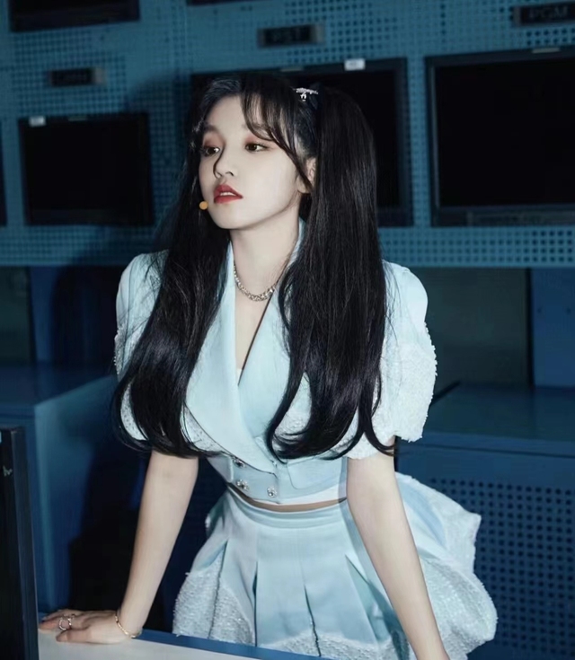 梳着双马尾带有一点点的挑染,穿着与同组男生一样色系的衣服,穿着白色小短袜,踩着白色小皮鞋走了出来