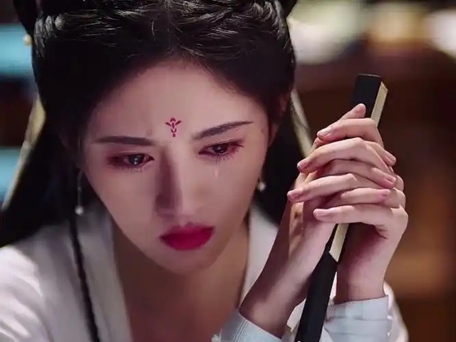 一滴泪不知觉从眼角滑落,长发接住了那滴悲伤。