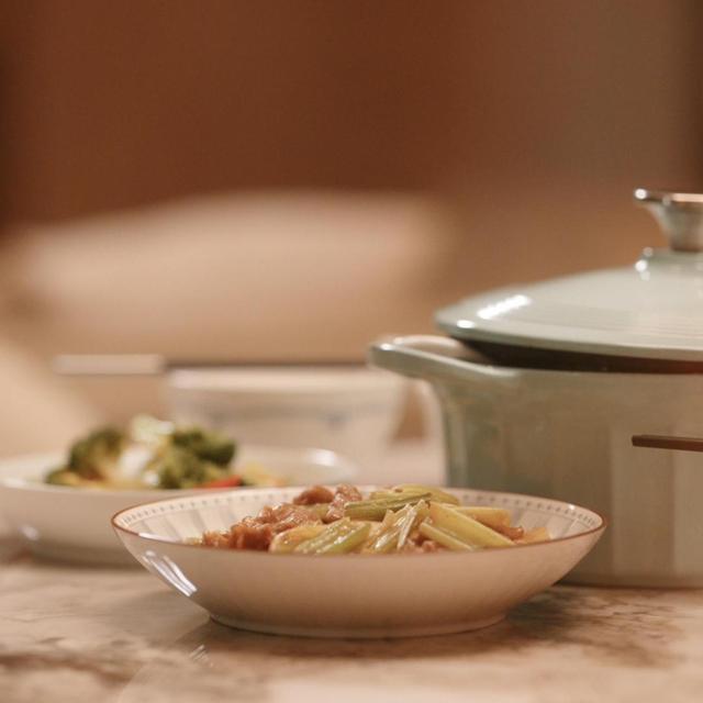 饭菜腾起的丝丝热气,在灰白的大理石台面上缭绕,氤氲出几分雅致,后方半开的炖盅仿佛在低声呢喃,乳白色的盖子微微掀开一道缝隙,悄然泄露了几缕馥郁的香气