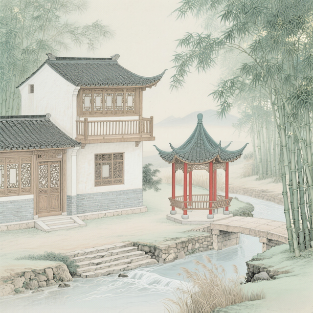 周公子的家,是竹林之中的一片房舍。有房、有屋、有阁楼、有凉亭、有田垄还有小桥流水。