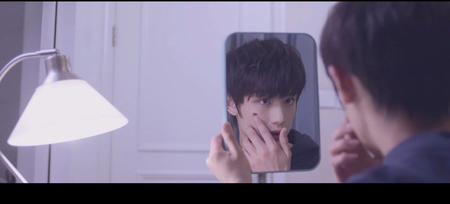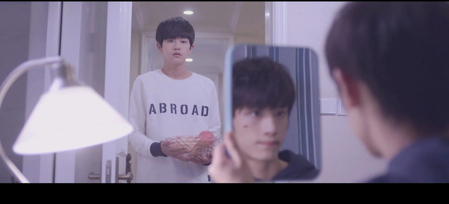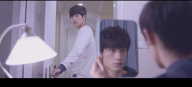 林说坐在房间里拿着镜子盯着自己的伤口,裴思恒则是半躺在林说的床上看着他