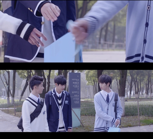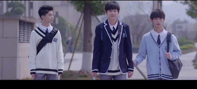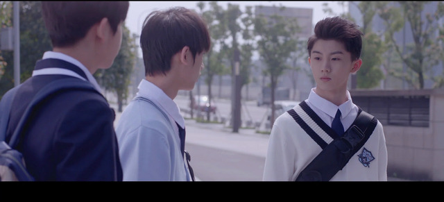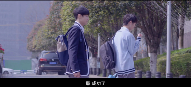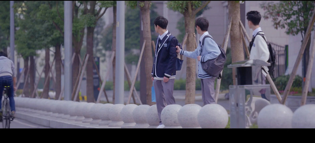 林东阳站在校门外等着林说和裴思恒