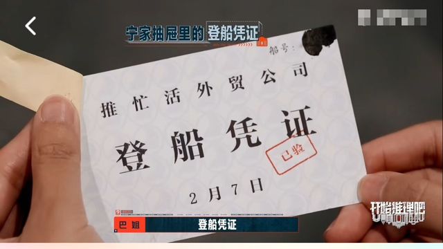〈宁船长家有登船凭证,是2月7日,已经登船了,但是船号己经被泼墨水了,在船票背后上面写的但是我的错〉