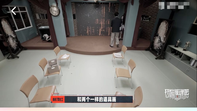 赫顶红和巴自美站在礼堂中央,目光被眼前的景象所吸引,只见左边与右边各都有一幅一模一样的道具画与道具柜并列摆放,仿佛是时空交错下的镜像,让人不禁陷入沉思〉