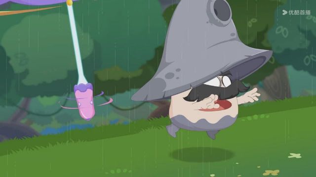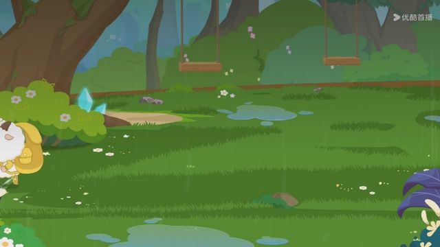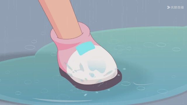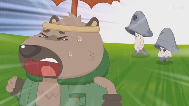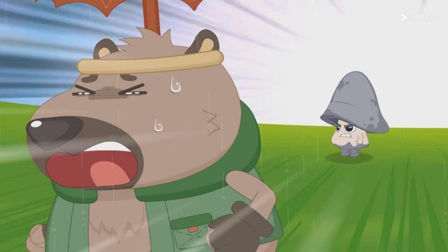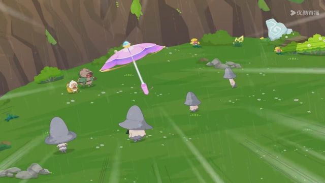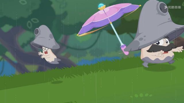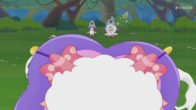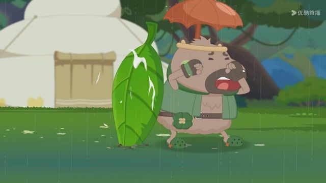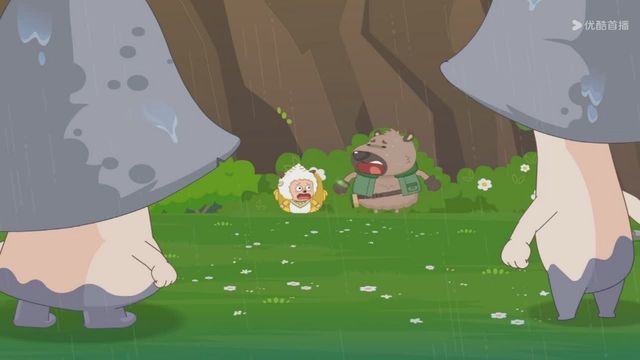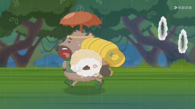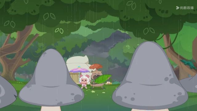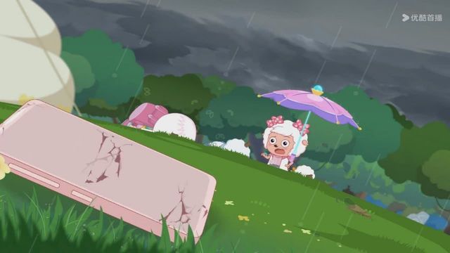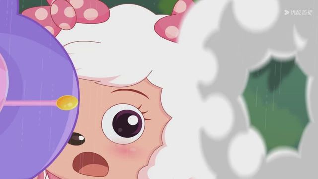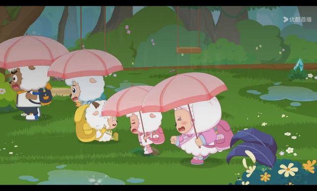 但下一秒就下起了雨,小羊们赶紧撑着伞跑走