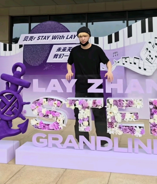 路过场馆外浪漫紫色装饰得格外精美的应援墙,张艺兴带小姑娘过去拍照。