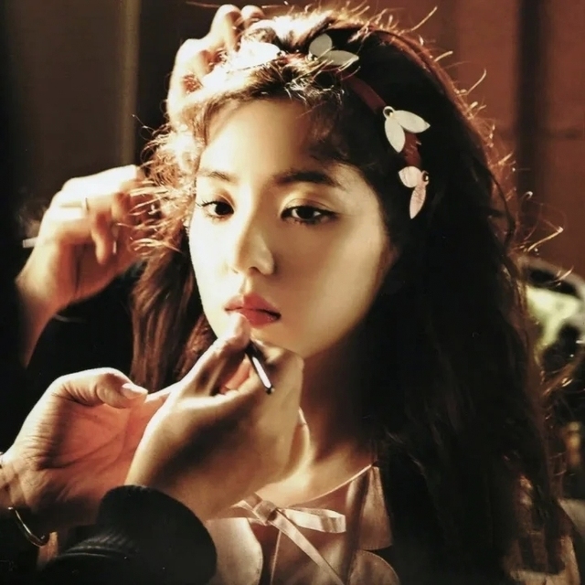 镜子前端坐着一位女子,她的脸庞柔和而优雅,如同精致的瓷器,细腻而富有光泽。