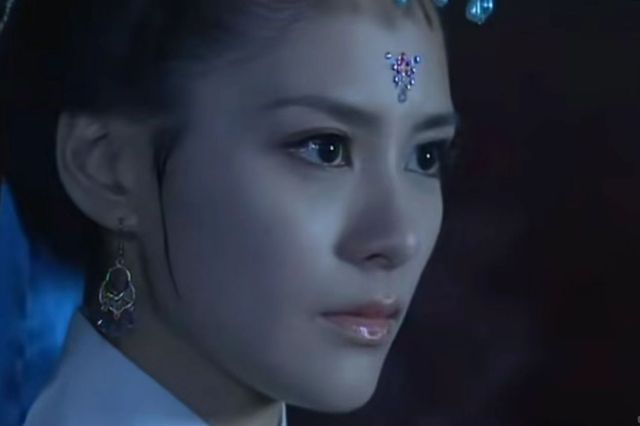 一席蓝色衣裙袭缀,发间并无太多饰品,蓝色耳坠随着转身微微摇晃。