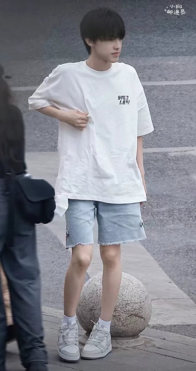 张泽禹上身穿着纯白长款半袖,下身穿着到膝盖上面的浅蓝色牛仔短裤。不看脸会让人产生这是从童话中走出的精灵王子