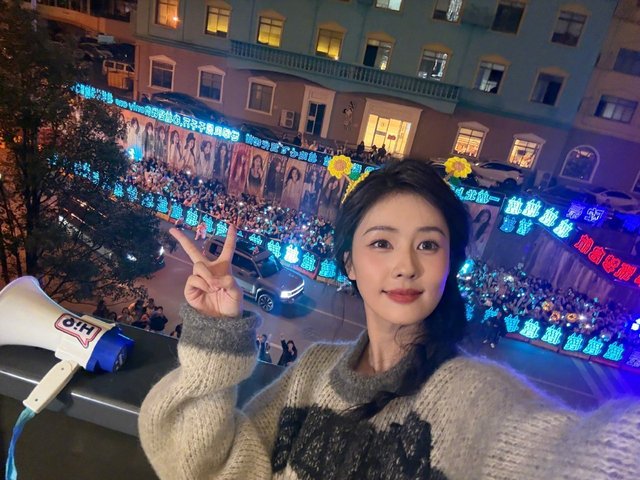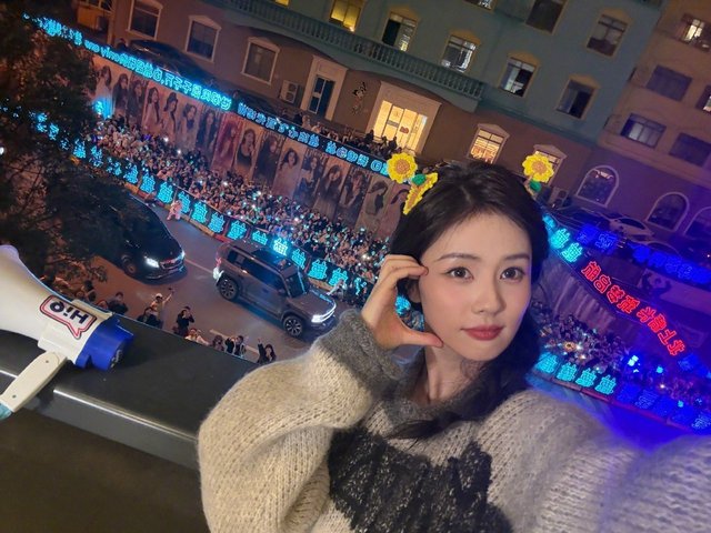 她走到外面,看着底下的粉丝为她呈现出的“蓝海”。心里感动不已,拿起呵呵准备还得喇叭对着粉丝说