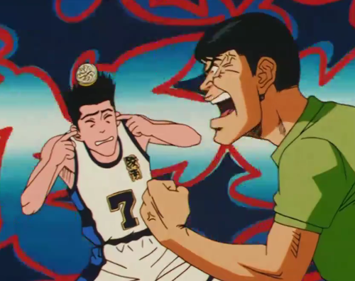 相田彦一来劝架,但是被樱木花道揪着衣服直接扔了出去
