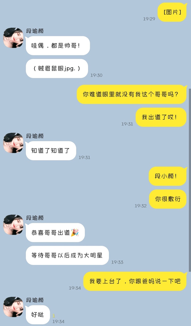 作为新人他们待遇其实也就勉勉强强吧,做好造型之后就是候场,段俞景拿出手机拍了张大合照,然后发给了段瑜颜。