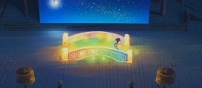蘑菇换上了苏浅浅专门为男主角“牛郎”设计的服装,和冬菇扮演的女主角“织女”一同站在了鹊桥,含情脉脉彼此看着对方,并声情并茂地叫着对方的名字。