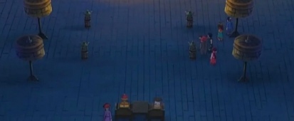 前排坐着皇上、皇太后、诸位大臣,后排站着各宫的太监、宫女,都在等待此次“牛郎织女”的演出。