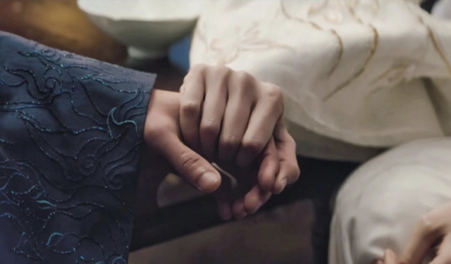走到一半两人发现洞内有人,萧蘅和晚音停了下来,吹灭了火躲了起来,然后发现晚音看着自己