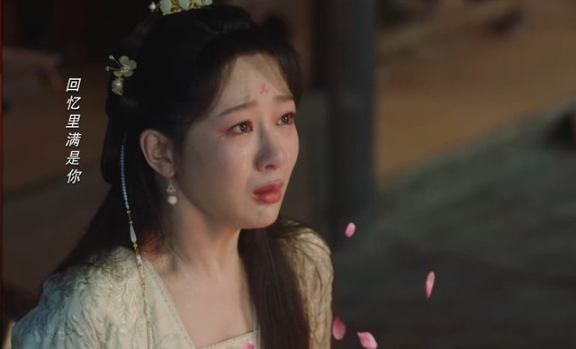 随后,一片轻盈的桃花瓣轻轻飘落,恰好停驻在挽卿的眉心,如同西陵珩温柔的吻别,挽卿感受到了这份触碰,仿佛是西陵珩最后的温柔,她缓缓闭上了双眼,泪水无声地滑落,浸湿了脸颊。