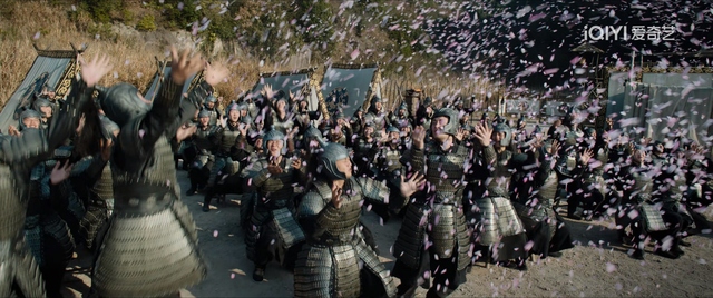 漫天的桃花瓣飘落着,绾绾眼里掩饰不住爱意看着苏易水,苏易水回头看着她也忍不住嘴角上扬,官兵们都很开心。