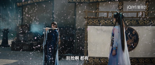 绾绾配合分发桃花花瓣时,发现精力不足,这个时候苏易水从一旁吹箫走了出来助力着。