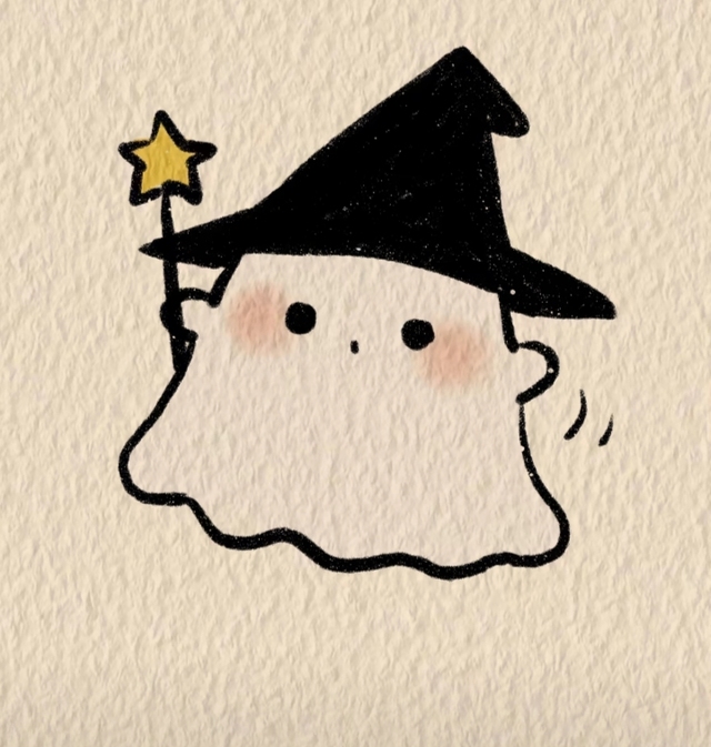坐下画了个可爱的小云朵,想了想又给自己画上魔法帽和魔法棒