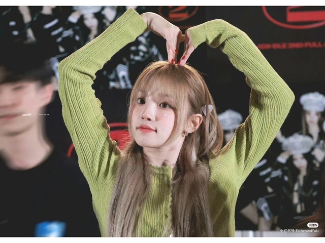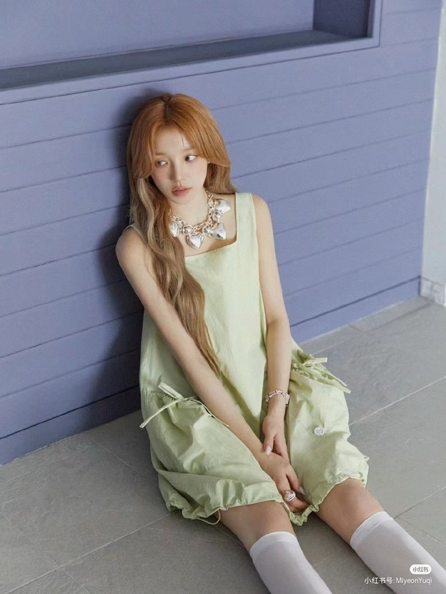 今天云浅穿的是一套十分具有春日气息的绿色半裙