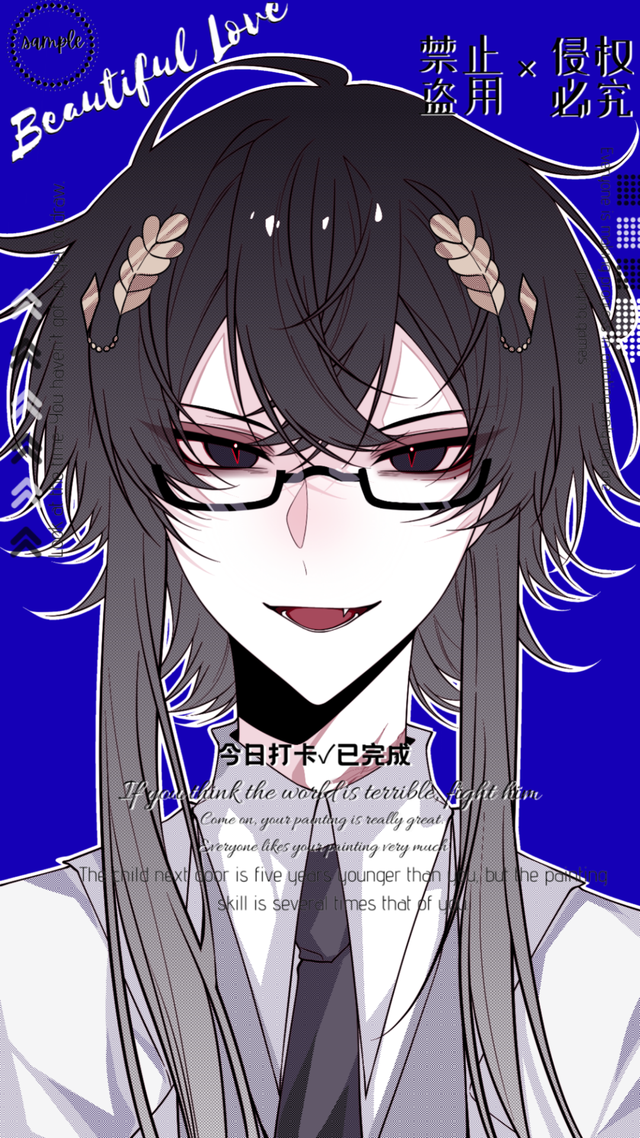 一身白大褂被微风轻轻的吹起 ,领口处绑着一个精致的黑色领带 ,一头黑色的短发每一处头发的尾端都有着鲜明的白色。少年的每一处看起来都是那么的精致靓丽 ,而在他低头戴上眼镜再次抬头的那一瞬,黑色的眸子中仿佛透露着无尽的深渊 ,让人不禁为之倾倒