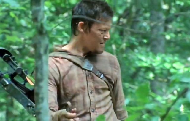 简单处理好伤口以后,达里尔想爬上山坡回到树林,但是腹部的伤口让他无法发出平时十分之一的力量,好不容易爬上了顶端,还差几步就上去的时候。