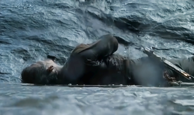 马儿受到了惊吓将达里尔给甩了出去,达里尔顺着山坡一路滚了下去,马儿赶紧逃离这里,达里尔滚到了河底,连续的撞击将达里尔的脑袋给撞破流血。