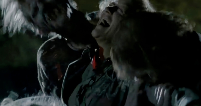 帕特里夏和贝丝手牵手逃离,突然一只行尸扑上来撕咬着帕特里夏,贝丝见了看着一顿尖叫。