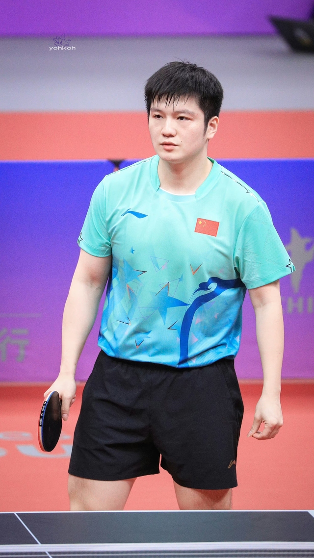 孙颖莎往那边方向看了一眼,确实樊振东正在被王皓谈话.但是应该不是特别严肃的事情,因为两个人的面部表情都非常的稳定