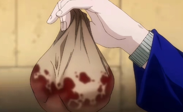 奇犽回过头来,露出了一个邪气满满的笑容,加上他手上那颗还在跳动的鲜红心脏,构成了一幅瘆人的画面